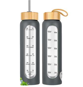 32 oz Borosilikatglas-Sportflasche mit Zeitmarkierung, Teesieb, Weiter Öffnung zum Direkten Trinken & Kochen, Camping-Geschirr