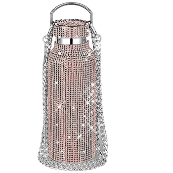 Luxury Gold Stainless Steel Bling Rhinestone Water Bottle Diamond with Back Chain